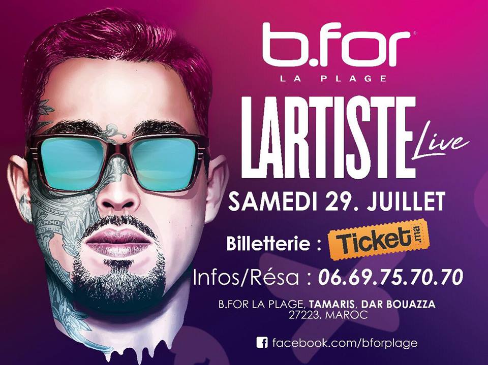 Oui, Lartiste baby est encore de retour au Maroc et cette fois-ci, c’est au b.for LA PLAGE à Dar Bouazza, ce samedi 29 juillet, à partir de 21 heures, pour le grand plaisir de nombreux de ses fans. Vous n’avez aucune excuse, toutes les raisons sont bonnes pour assister à son concert et s’enjailler comme jaja… En voici quelques unes : Alors, on va où ? On fait quoi ? N’y pensez pas trop : On va au B.For La PLAGE ce weekend.