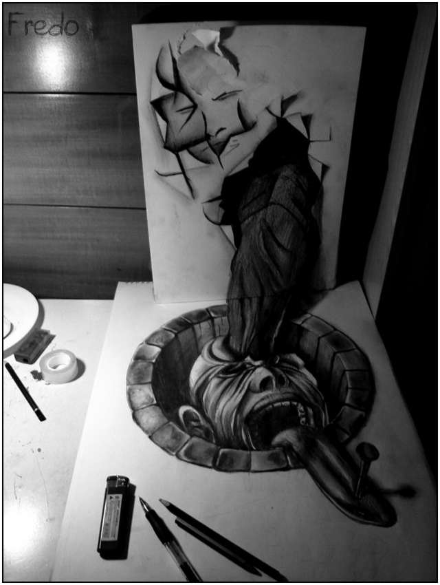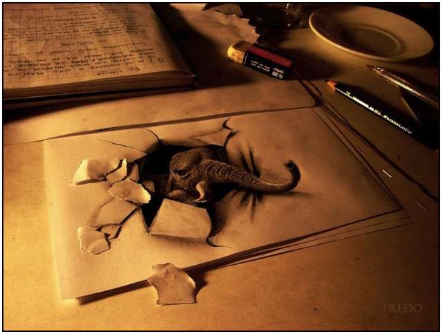 Vous avez certainement déjà vu des photos ou bien même de vos propres yeux des graffitis ou peintures artistiques dans la rue qui donnent une impression de 3D et de réalisme. Ce genre de créations est vraiment très impressionnant et c’est un peu ce que je vous propose ici à la seule différence que cette fois, c’est du petit format si je puis dire. En effet, ce ne sont pas des photos prises dans la rue que je partage ni des peintures au sol ou sur des murs mais des dessins sur papier, sur feuille blanche, qui comme vous pouvez le constater sont carrément bluffants !
