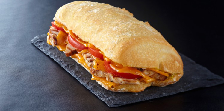 - Ouvrir les pains ou les baguettes en 2 puis déposer une tranche de cheddar, poser quelques morceaux de blanc de poulet sautés et dorés, et recouvrer de tomates.