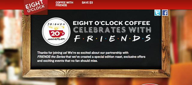 Pour fêter les 20 ans de la série culte F.R.I.E.N.D.S, la célèbre société de production et le Eight O’Clock Coffee ont décidé de rendre le rêve des amoureux de la série possible ! Comment ? En reconstituant le Central Perk café où Monica, Rachel, Chandler, Phoebe, Joey et Ross avaient l’habitude de partager de longs débats autour d’une bonne tasse de café.