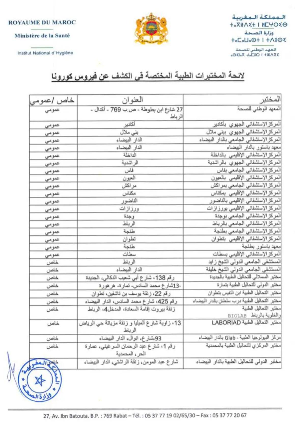 Voici la liste complète des structures publiques et privées pratiquant le test. Le laboratoire Laboriad à Rabat a récemment été ajouté.
