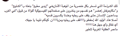 « Idder ne maîtrise pas bien la Darija vu qu’il est originaire de Tiznit. Et c’est tout à fait normal. Il utilise l’anglais pour communiquer avec ses frères et amis, et parle en tamazight pour communiquer avec ses parents et proches. En plus, il était fatigué suite au long trajet effectué de Tiznit à Casablanca… »