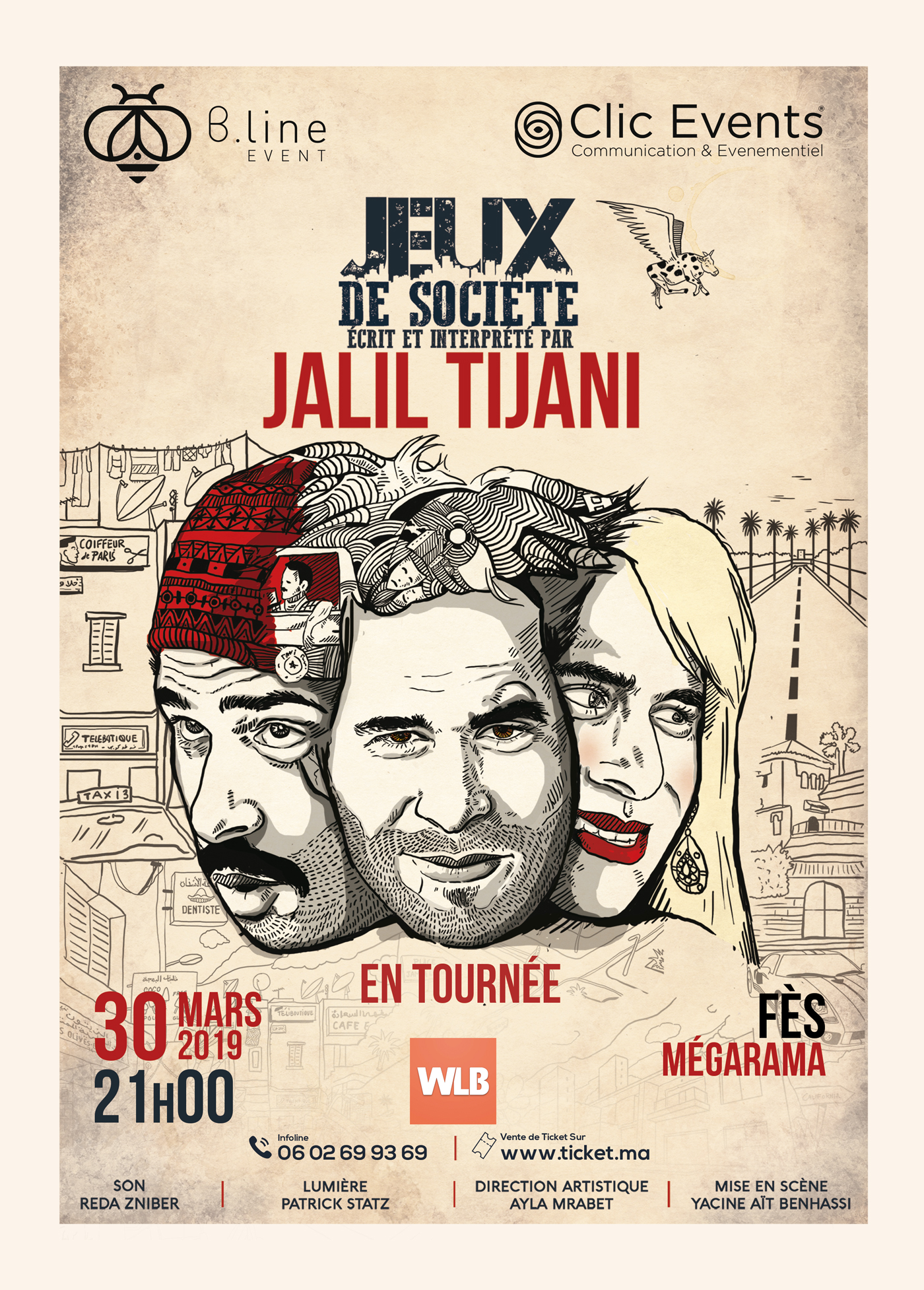 Le jeune prodige ne cesse de faire sensation… Après un an de rodage, une vingtaine de représentations jouées à guichet fermé au Maroc et une première tournée européenne (Paris, Bruxelles, Lyon et Genève) achevée avec succès, le one-man-show Jeux de Société, écrit et interprété par Jalil Tijani, débarque encore une fois au Maroc pour des dates inédites à Mohammedia, Fès et Casablanca : le 29 mars à 21H au théâtre Abderrahim Bouabid à Mohammedia, le 30 mars à 21H au Mégarama de Fès et le 12 avril à 21H au Mégarama de Casablanca.