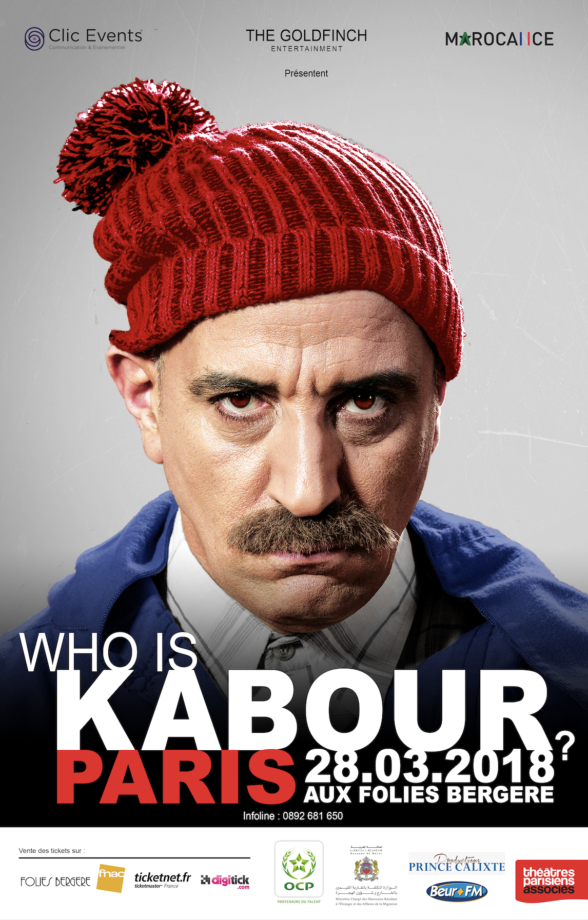 Ce nouveau spectacle, intitulé WHO’S KABOUR, mettra en avant le personnage en toute sa splendeur, avec une mise en scène exceptionnelle représentée sous forme d’interviews sur scène avec ce personnage incorrigible. Il sera produit par Marocance et Clic Events pour la première fois en France, à Paris, le Mercredi 28 Mars 2018 au théâtre mythique des Folies Bergères.