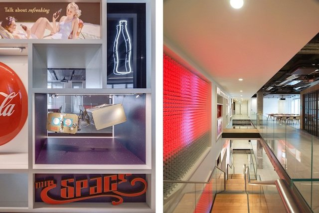 Le nouveau siège Londonien de Coca Cola n’aura pas tardé à faire parler de lui. C’est à travers des clichés publiés sur la toile que les internautes découvrent des locaux à l’architecture originale. Lampes Coca Cola, murs Coca Cola, tableaux Coca Cola… Tout est à l’effigie de la marque !