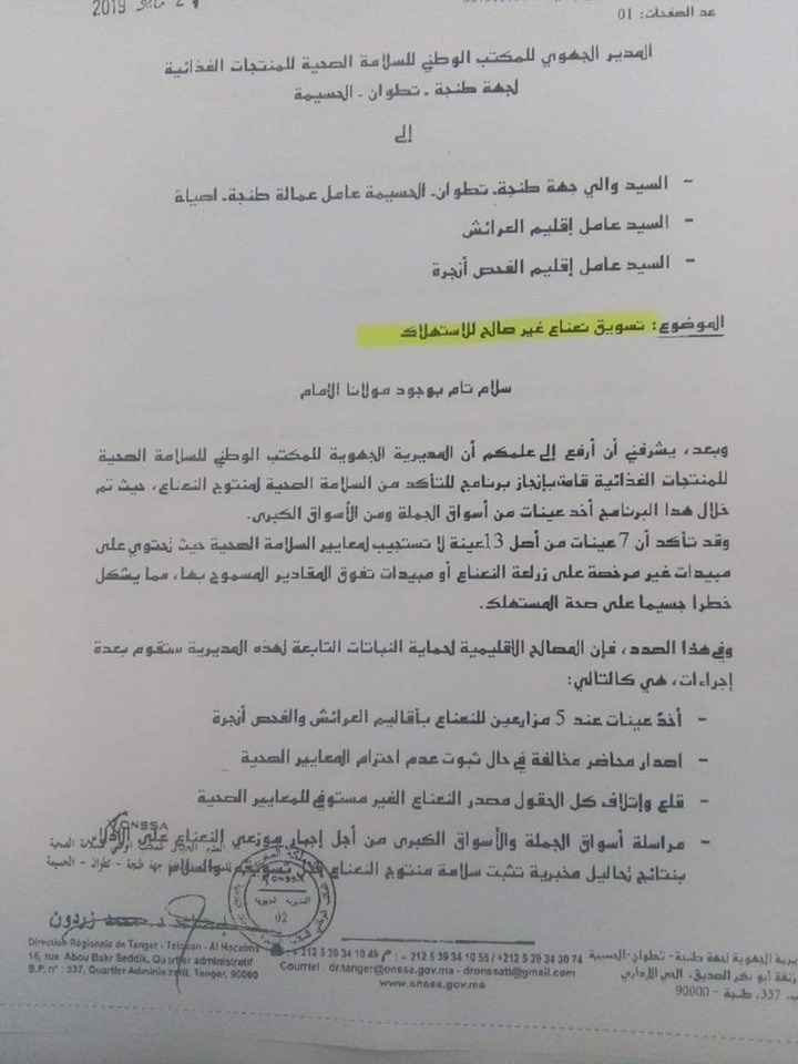 Dans un autre courrier envoyé aux Wilayas de Tétouan, Tanger- Al Hoceima, cette région est également concernée par cette mise en garde.