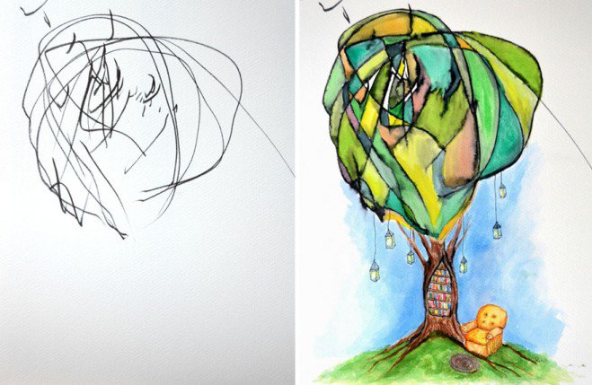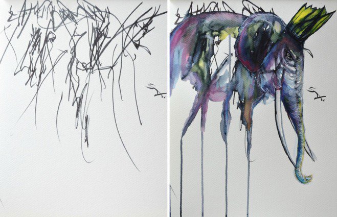 Eve a deux ans, et comme tous les enfants de son âge, on parle plutôt de gribouillis que de dessins… C’était sans compter sur l’immense talent de sa maman qui transforme les dits gribouillis en de superbes tableaux.