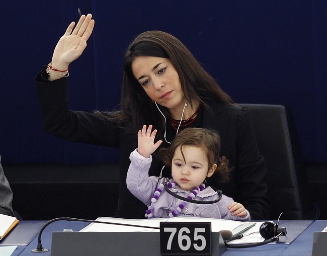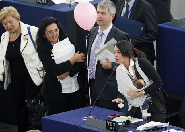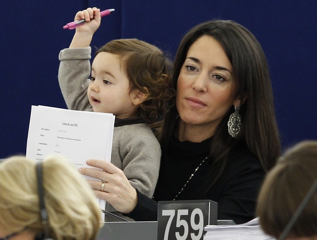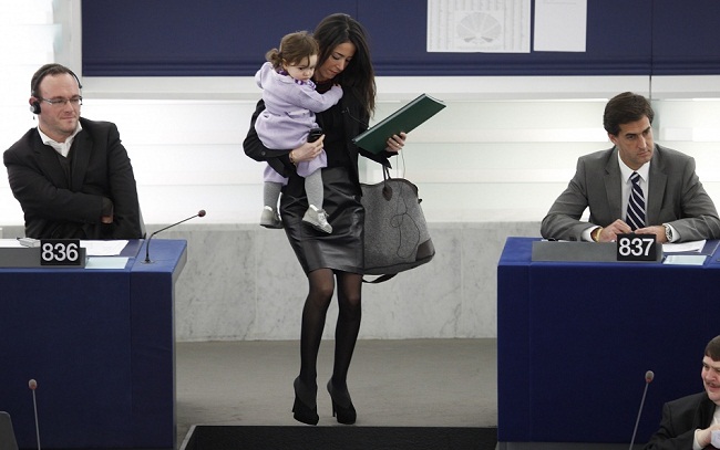 Licia Ronzulli, eurodéputée italienne du parti « Le Peuple de la Liberté » de Silvio Berlusconi, s’est habituée à venir au parlement accompagnée de son bébé. Vittoria Cerioli a assisté avec sa mère la toute première fois à une séance plénière au parlement européen à Strasbourg à l’âge de 6 semaines, et ce n’était pas la dernière. La députée européenne a continué d’amener sa petite fille régulièrement pendant les séances de parlement, jusqu’aujourd’hui où la petite Vittoria a 2 ans et 2 mois.
