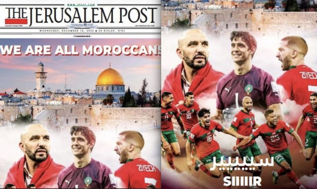 « WE ARE ALL MOROCCANS », tel est le titre brandit sur plusieurs colonnes par « The Jérusalem Post » un journal israélien à grand tirage. Le journal d’expression anglophone écrit dans ses colonnes de ce 14 décembre, que les israéliens, gouvernement et peuple encouragent les lions dans leur avancée, précisant qu’Israël s’est intéressé à toute les victoires enregistrées par les Lions de l’Atlas depuis le début de la compétition, et que chaque victoire des lions est célébrée comme il se doit.